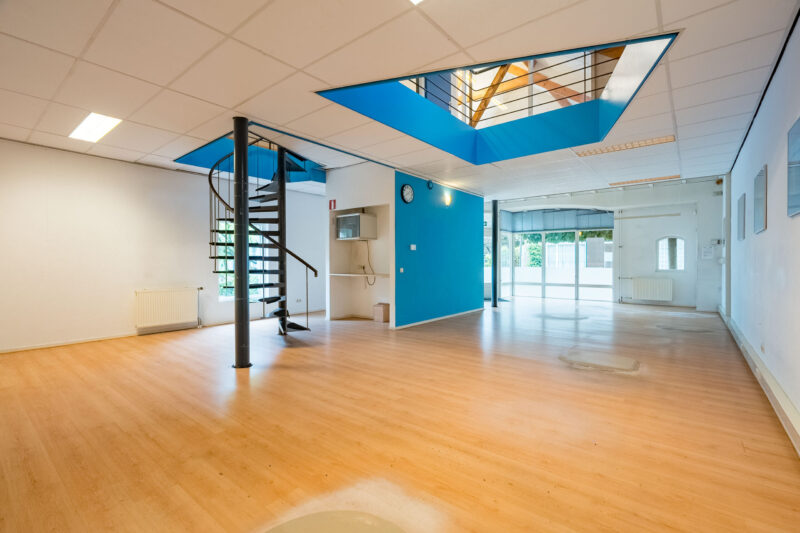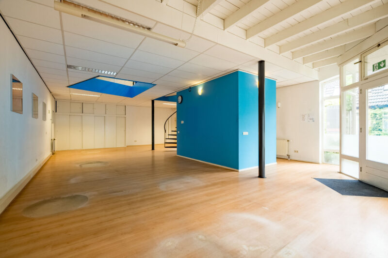 Representatieve zelfstandige kantoorruimte (kantoorunit) met ca. 157 m² functionele vloeroppervlakte. De kantoorruimte / -unit bestaat uit een kantoor- / ontvangstruimte met garderobe en toiletgelegenheid op de begane grond ter grootte van circa 95 m² en een middels een stalen spiltrap bereikbare kantoorruimte (ca. 62 m² groot) op de eerste verdieping bestaande uit twee ruime kantoor- / vergaderruimtes, een opslagruimte met C.V.-kast en een ruime centrale overloop.