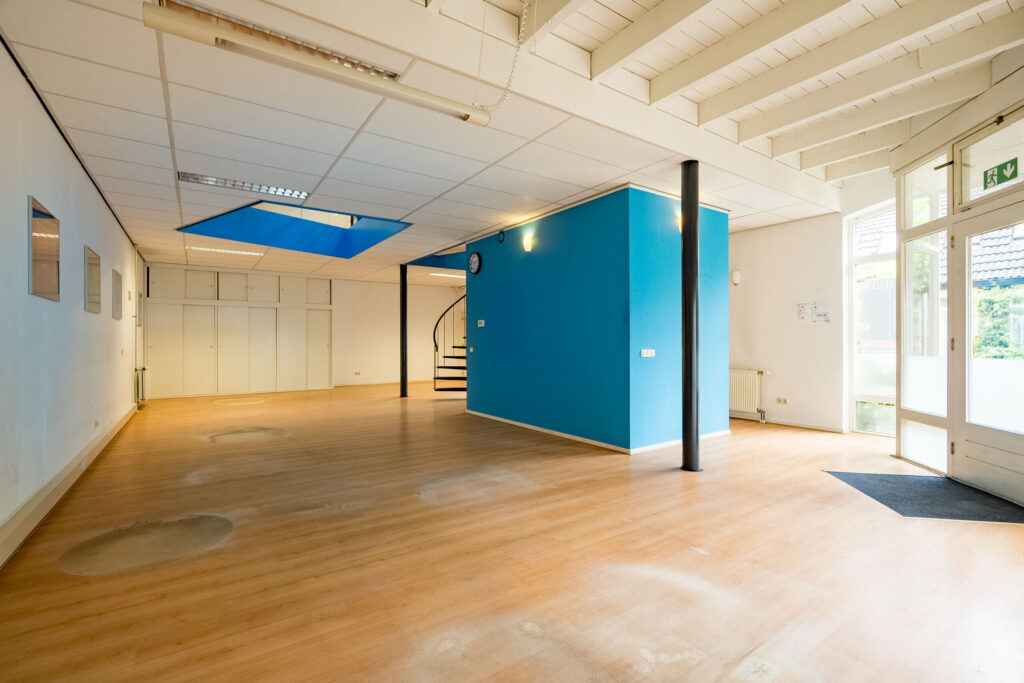 Representatieve zelfstandige kantoorruimte (kantoorunit) met ca. 157 m² functionele vloeroppervlakte. De kantoorruimte / -unit bestaat uit een kantoor- / ontvangstruimte met garderobe en toiletgelegenheid op de begane grond ter grootte van circa 95 m² en een middels een stalen spiltrap bereikbare kantoorruimte (ca. 62 m² groot) op de eerste verdieping bestaande uit twee ruime kantoor- / vergaderruimtes, een opslagruimte met C.V.-kast en een ruime centrale overloop.