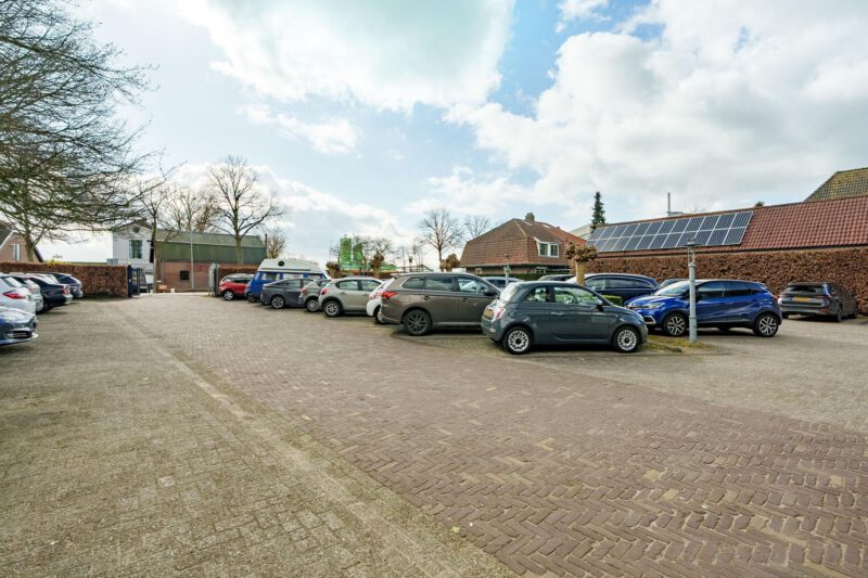 De centrale parkeerplaats van bedrijvencomplex “De Hanenhof”, ontsloten aan de zijde van de Nude voorziet in twee parkeerplaatsen per kantoorunit.