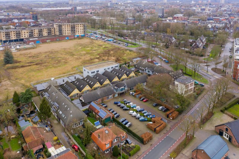 De centrale parkeerplaats van bedrijvencomplex “De Hanenhof”, ontsloten aan de zijde van de Nude voorziet in twee parkeerplaatsen per kantoorunit.