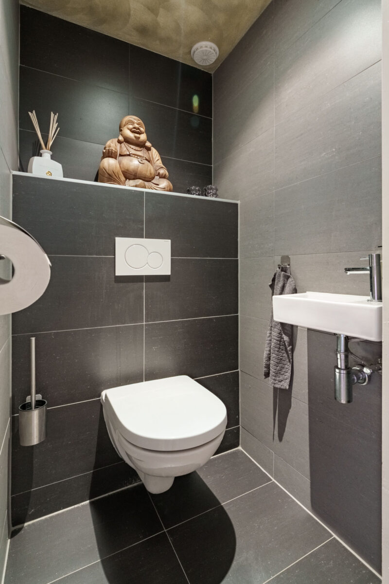 Het toilet bevindt zich separaat in de hal en is voorzien van een fonteintje.