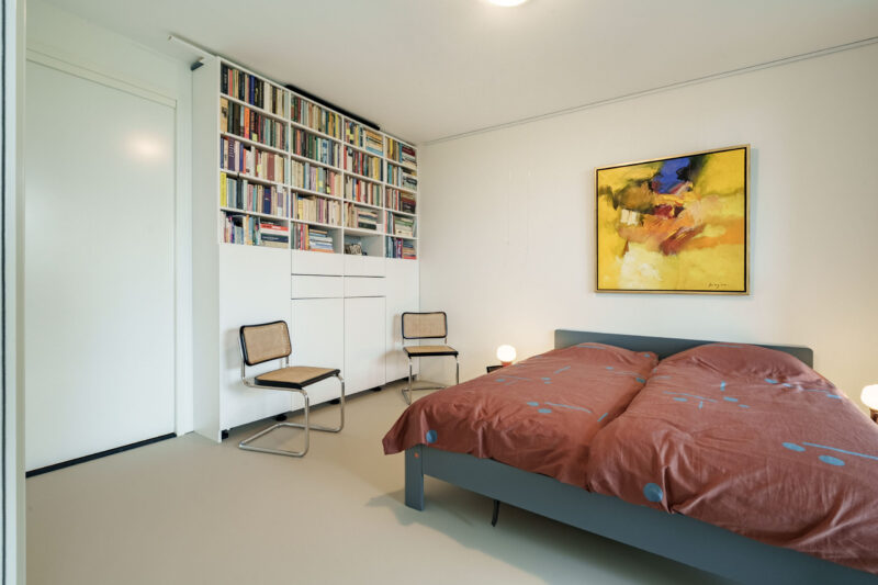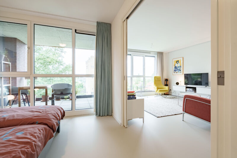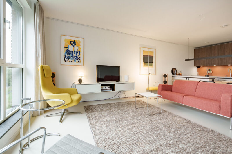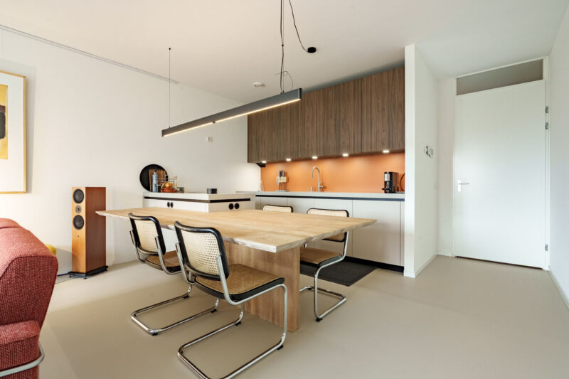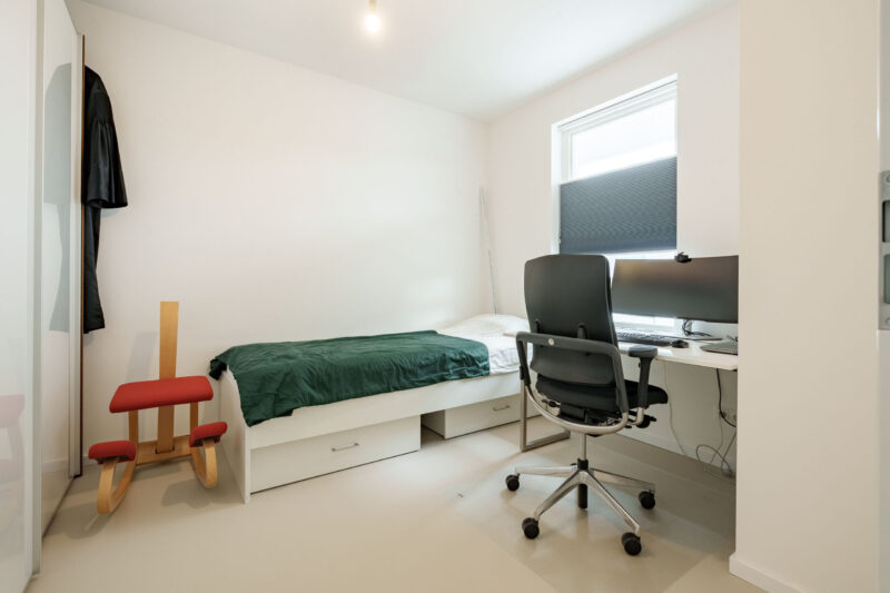 Er zijn hierdoor geen radiatoren in de kamers aanwezig wat een mooie en strak uiterlijk geeft.