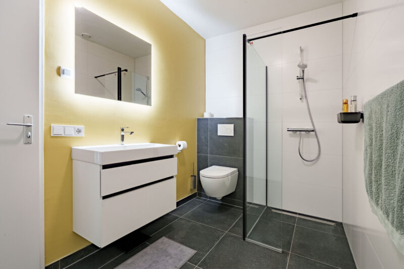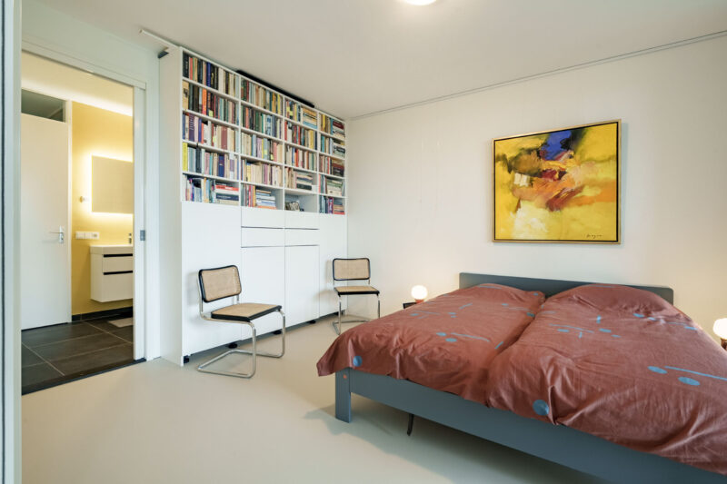 De rechtstreekse verbinding met de badkamer zorgt voor extra wooncomfort. De badkamer is voorzien van een inloopdouche, douchetoilet en een wastafelmeubel.