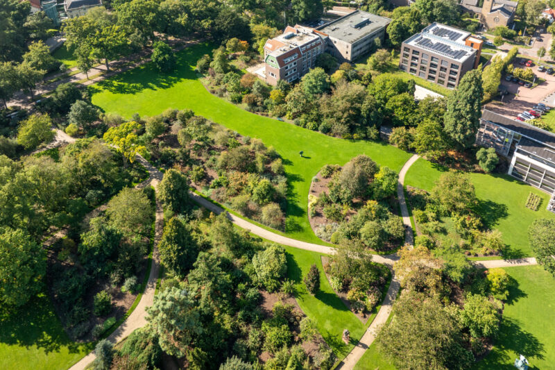De botanische tuin met allerlei soorten bomen en heesters was ooit aangelegd voor het onderwijs van de studenten in bloemen-, boom-, fruit en groenteteelt.