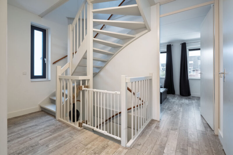 De overloop biedt toegang tot twee slaapkamers. Doormiddel van het plaatsen van een dakkapel kon de tweede slaapkamer gerealiseerd worden. Daarnaast is er een praktische berging aanwezig met de aansluitingen voor de wasapparatuur en de cv-installatie, wat zorgt voor extra bergruimte.