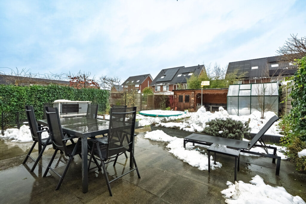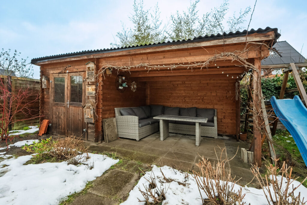 – Houten veranda en extra berging in de achtertuin;