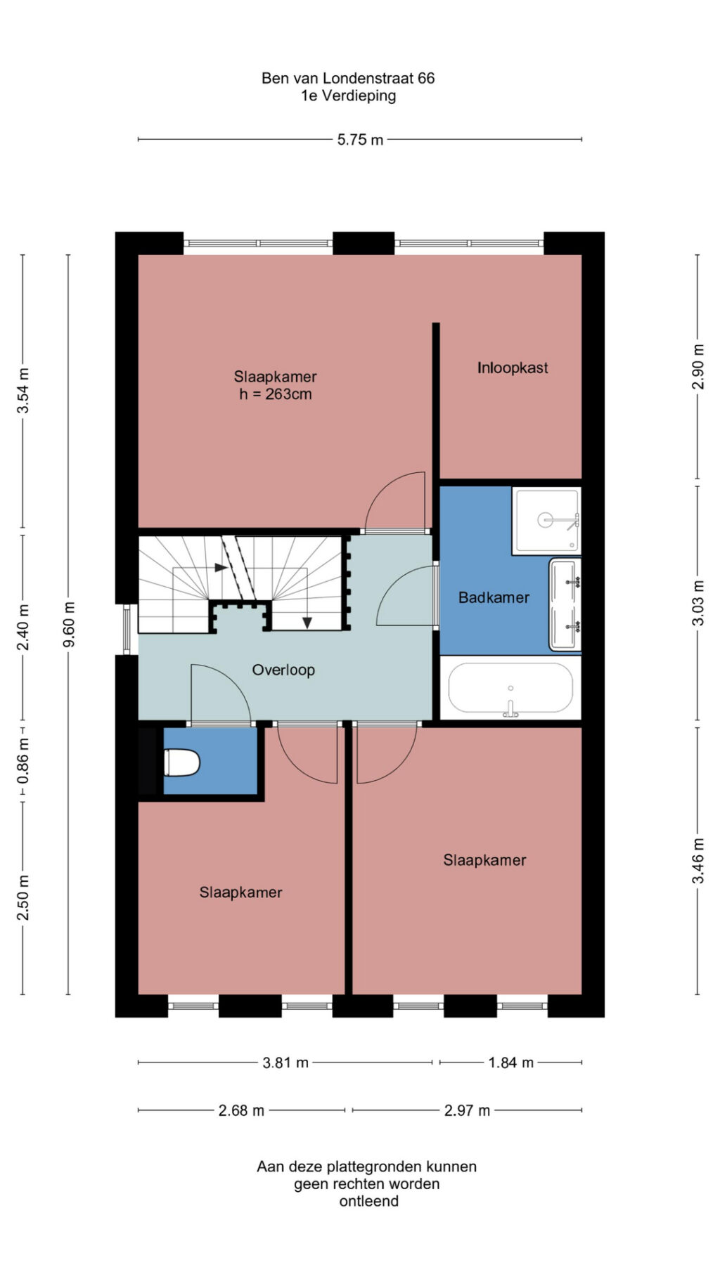 Via de overloop bereikt u de verschillende vertrekken op deze verdieping. Hier bevinden zich drie ruime slaapkamers. De grootste slaapkamer is daarnaast voorzien van een royale inloopkast.