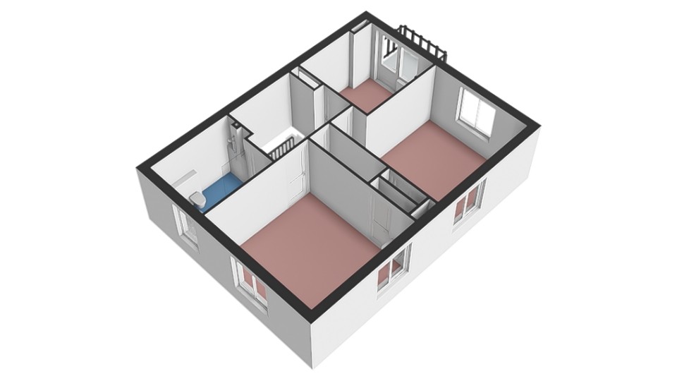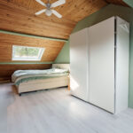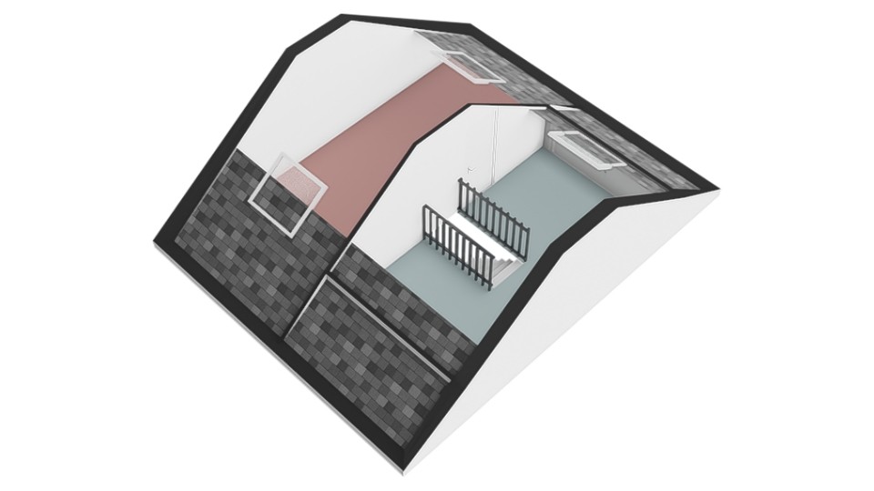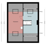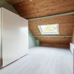2e verdieping: overloop/voorzolder met een dakraam en diverse opbergruimte achter schuifdeuren, royale vierde slaapkamer met aan weerzijde een dakraam en een wastafel.