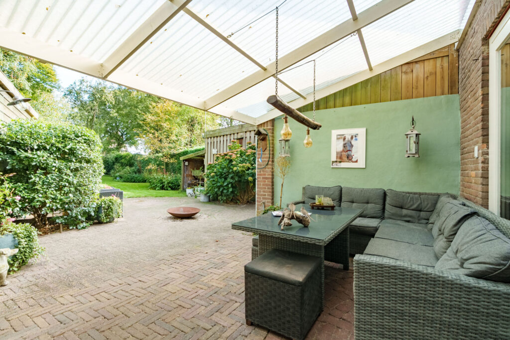 Het terras aan de achterzijde is uitgerust met een overkapping. De perfecte plek om te genieten van de tuin, de rust of samen door te brengen met familie of bezoek.