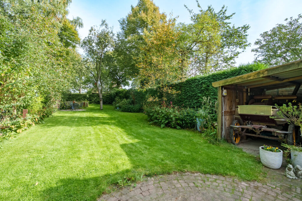 Er zijn diverse houten bergingen aanwezig. Aan de voorzijde is er voldoende parkeergelegenheid op eigen terrein en de auto kan droog staan onder de carport.