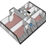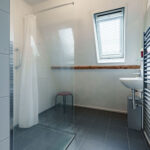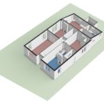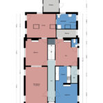 – Vijf (werk/slaap)kamers en twee badkamers op de begane grond en eerste verdieping;