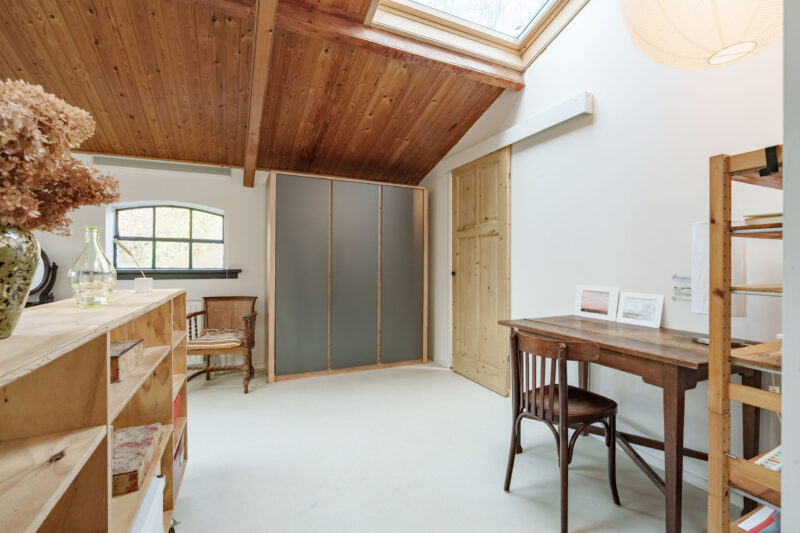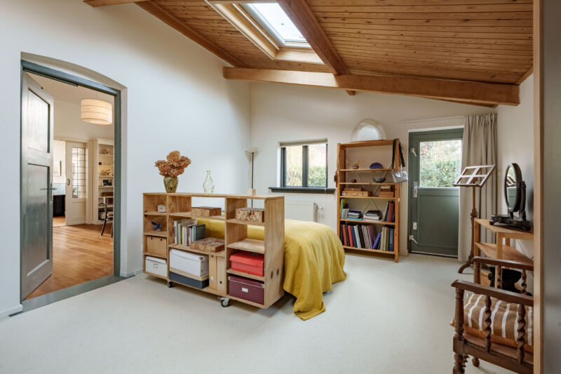 – Sfeervolle kamer-en-suite met veel lichtinval en houten vloer;