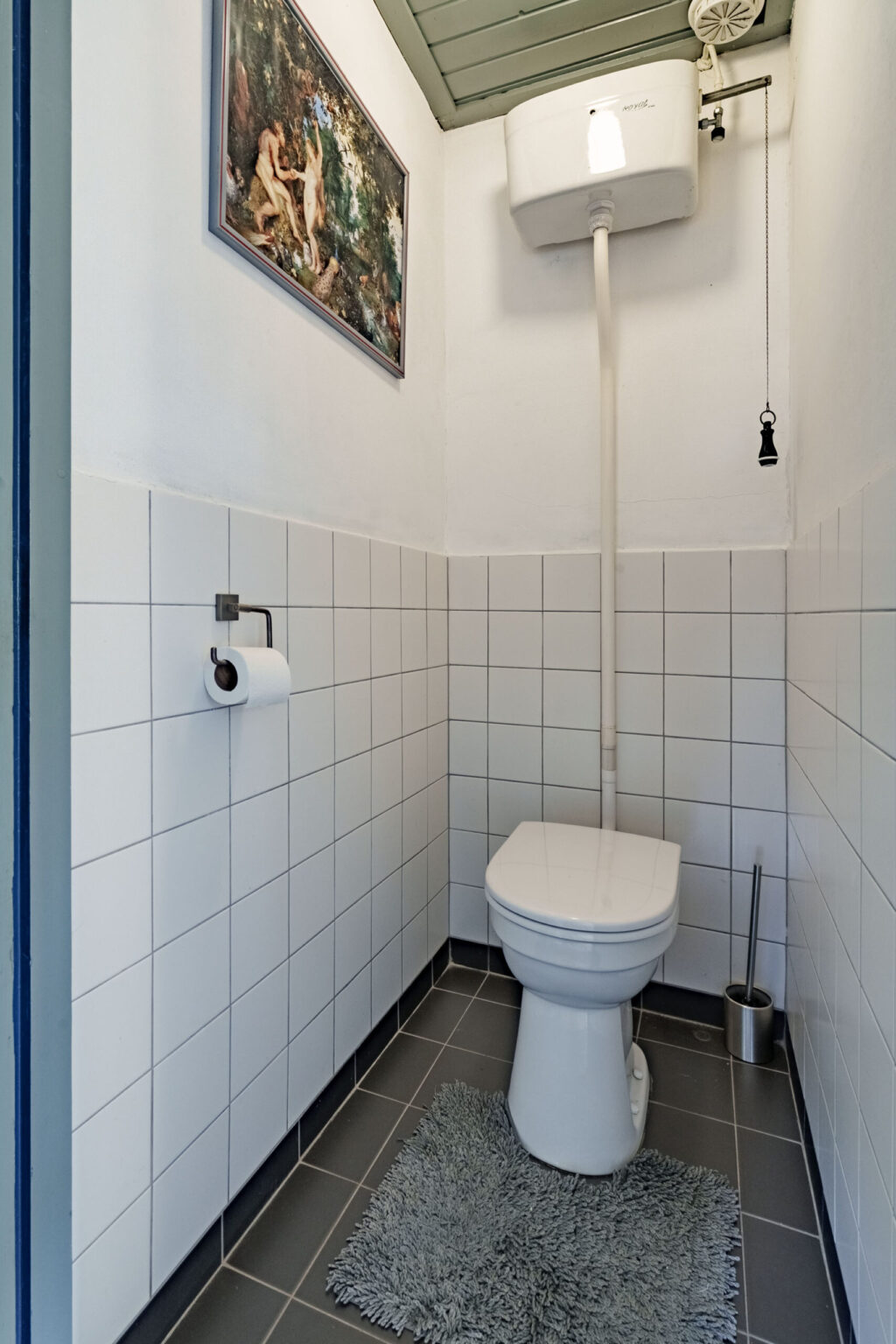 Eerste verdieping: Royale overloop met toegang tot vier ruime slaapkamers, waarvan twee met wastafel en drie met vaste kast. De badkamer beschikt over een inloopdouche, wastafel en een separaat toilet. Ook bevindt zich hier een wasruimte met wastafel en aansluiting voor wasapparatuur. Via een luik met vlizotrap is de bergvliering bereikbaar.