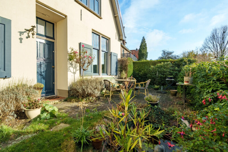 De groene, rondom gelegen tuin is een paradijs voor liefhebbers van tuinieren. Dankzij diverse zitplekken geniet u op elk moment van de dag van de zon of juist van de schaduw.