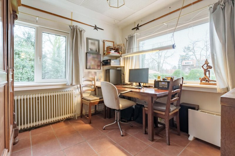 Op de begane grond bevindt zich o.a. een ruime en lichte woonkamer, een separate keuken, eetkamer, werkkamer en een ruime slaapkamer met een badkamer en-suite.