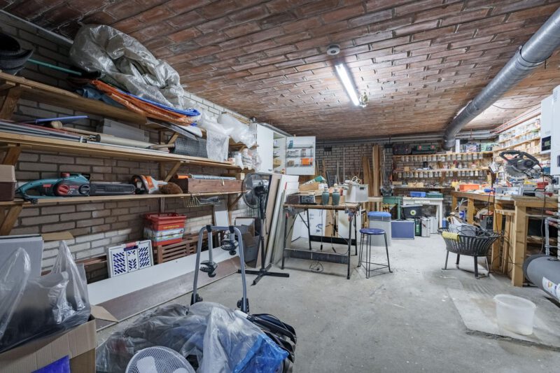 Op het woonniveau lager (het souterrain) bevinden zich twee slaapkamers met een raam, badkamer met toilet, een royale garage, hobbyruimte en een atelierruimte.