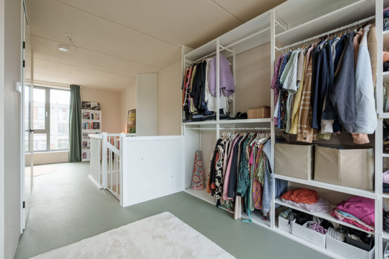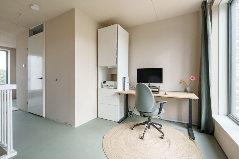 De tweede verdieping is een royale open ruimte die geheel naar eigen wens in te delen is als extra slaapkamer, een comfortabele werkkamer of hobbyruimte. Daarnaast beschikt deze verdieping over een royale inpandige berging, waar zich de warmtepomp, het boilervat, ventilatiesysteem met warmteterugwinning, de omvormer voor de 12 zonnepanelen en de aansluitingen voor wasapparatuur bevinden.