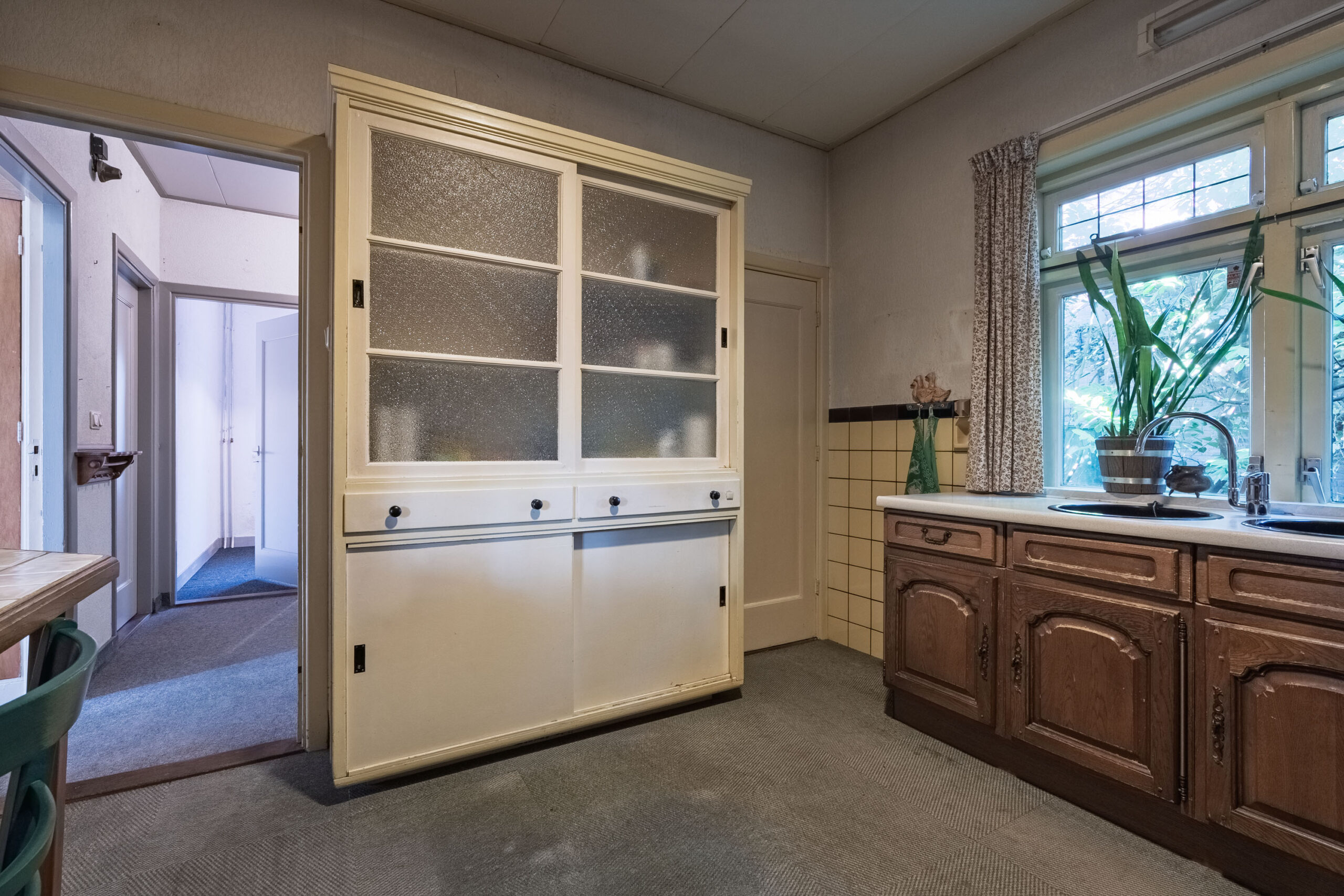 De woning beschikt over een (werk-/slaap) kamer op de begane grond en dichte keuken. Vanuit de keuken heeft u toegang tot de ruime bijkeuken.