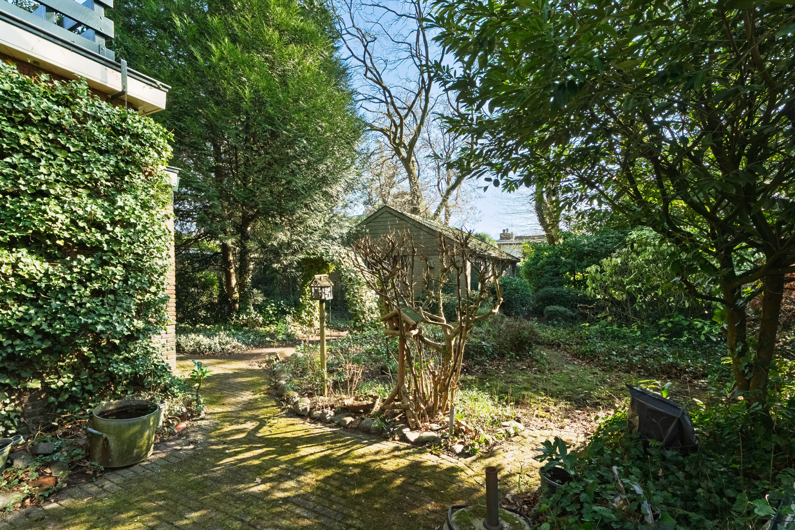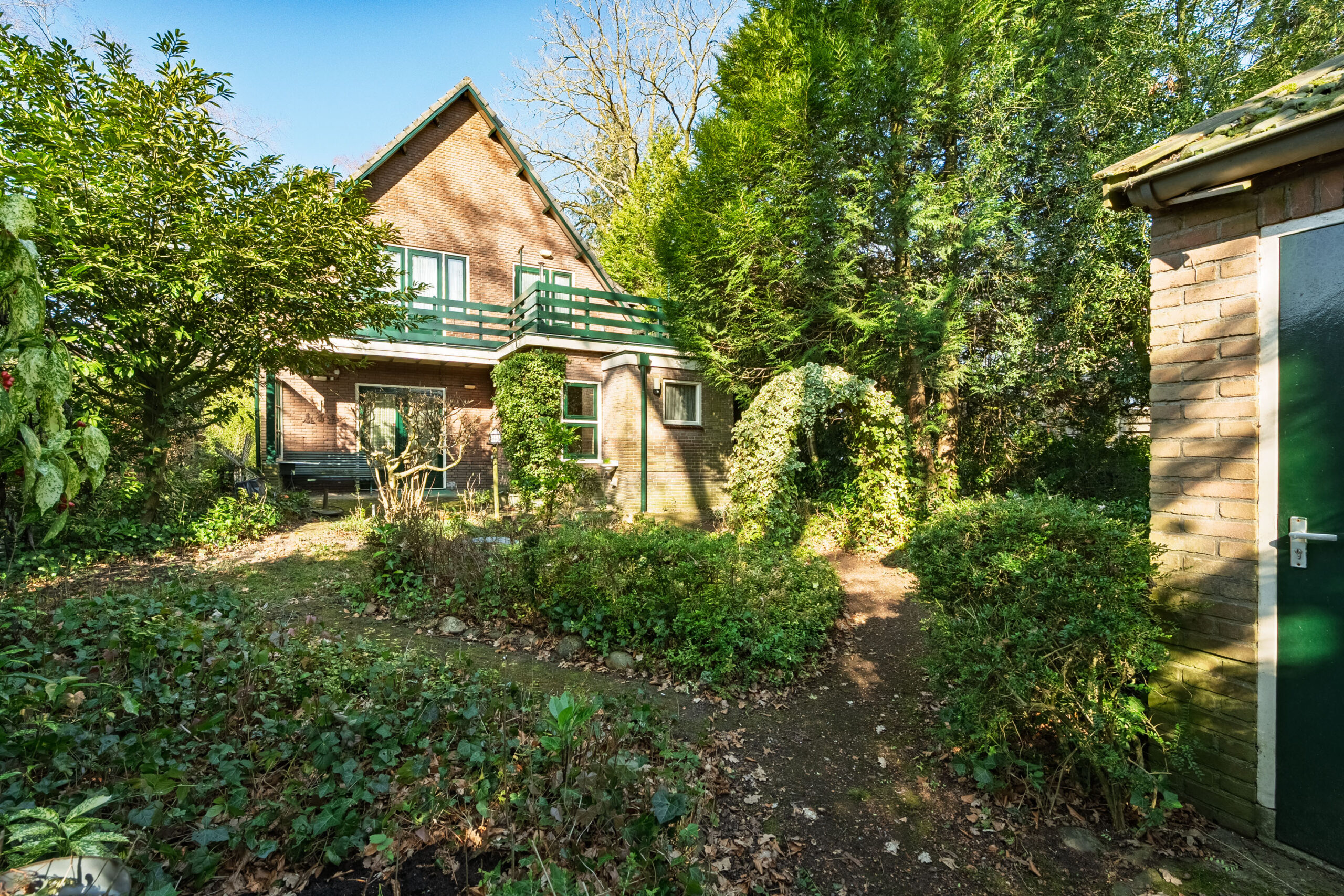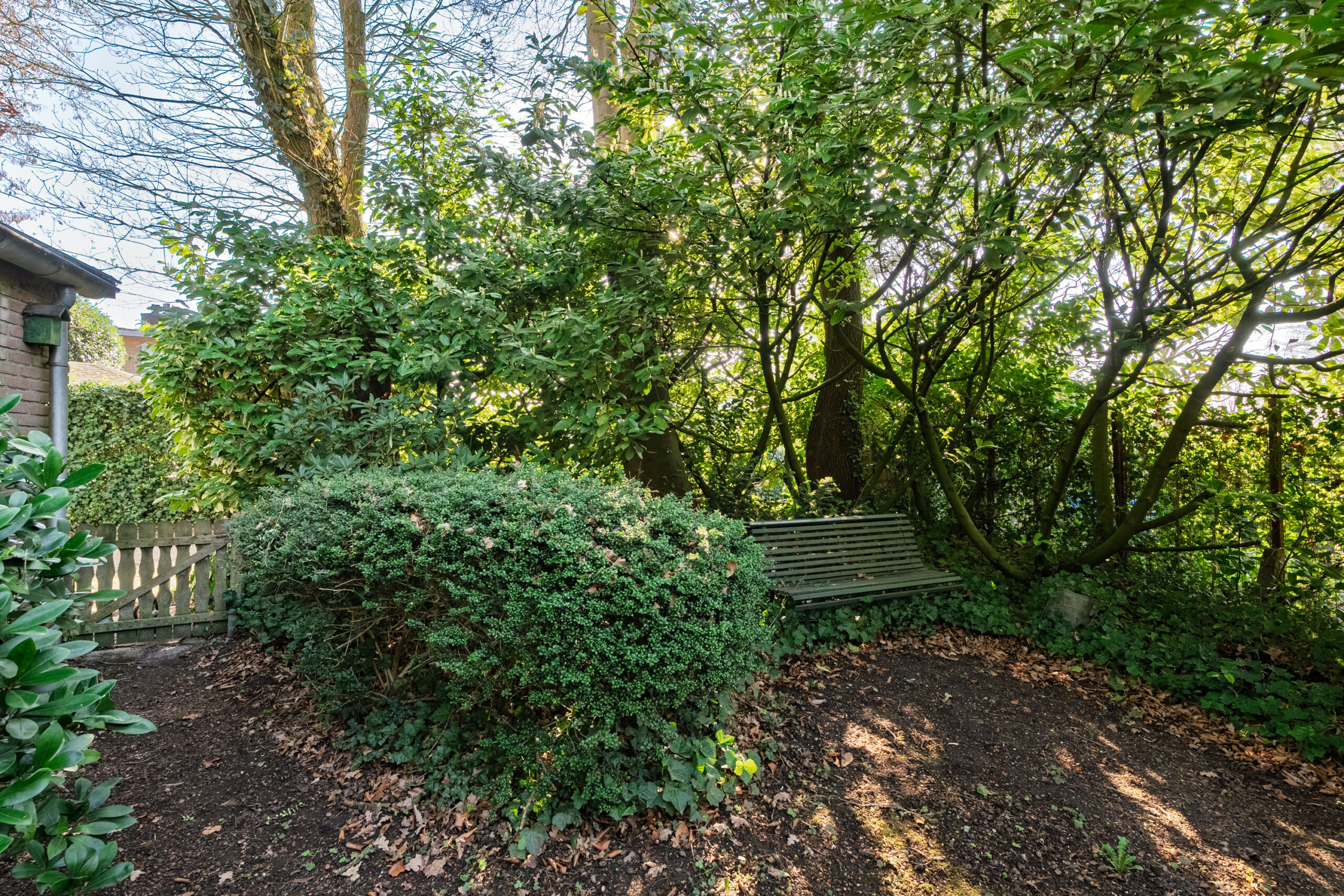De groene, rondom gelegen tuin is een paradijs voor liefhebbers van tuinieren. Dankzij diverse zitplekken geniet u op elk moment van de dag van de zon of juist van de schaduw.