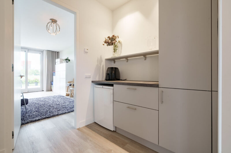– Door de woning ligt een duurzame lichte PVC vloer;