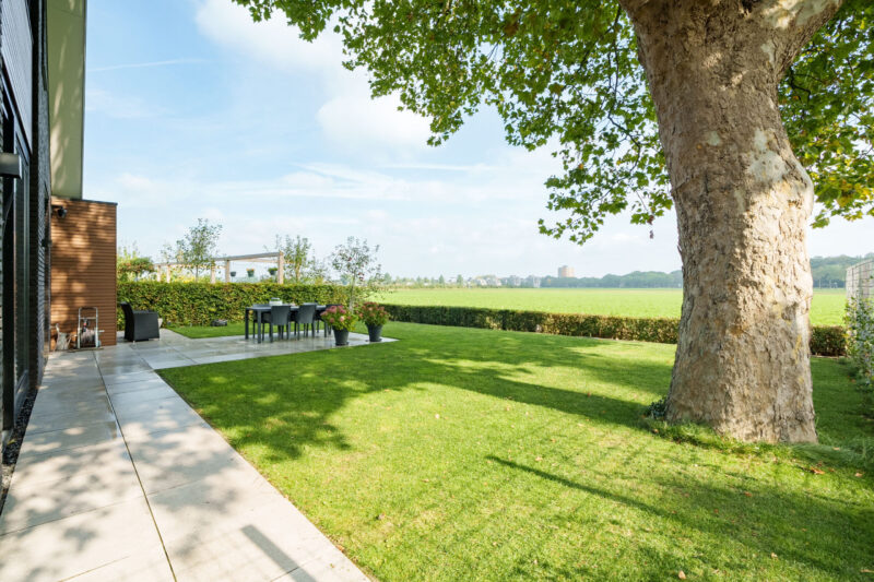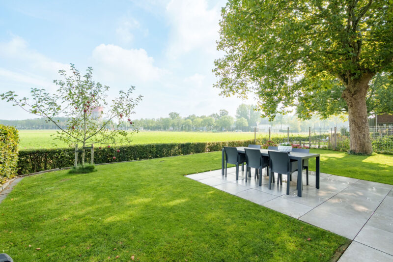 Het terras ligt bij de authentieke karaktervolle Plataan die er ook voor zorgt dat de strakke grasmat optimaal in conditie blijft.