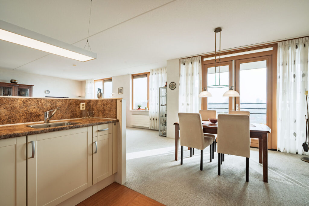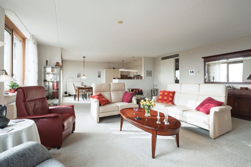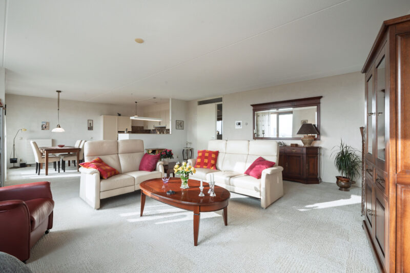 Het appartement kenmerkt zich door een ruime en sfeervolle living met grote raampartijen die zorgen voor een prachtige lichtinval. De royale woonkamer biedt volop mogelijkheden voor een comfortabele zit- en eethoek en vormt het hart van de woning. Vanuit de living heeft u toegang tot het balkon, een fijne plek om te ontspannen en te genieten van de buitenlucht.
