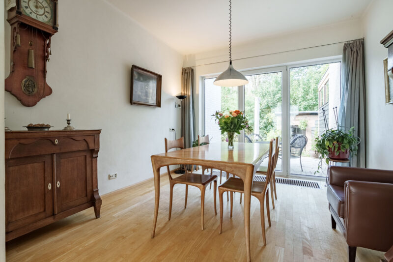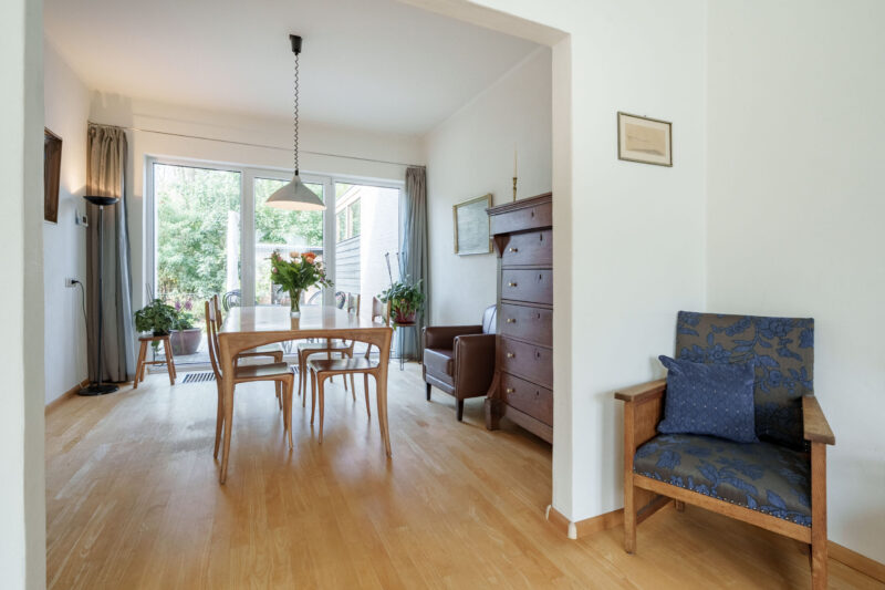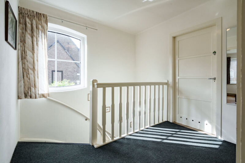 De gevel valt direct op door de elegante licht geboogde ramen. De vele ramen met roedeverdeling geven de woning een eigen identiteit. De voortuin, met veel groen, zorgt voor een prettige en rustige sfeer die je meteen verwelkomt. Binnen gaat de warme sfeer moeiteloos verder door de aanwezigheid van vele paneeldeuren en de vaste inbouwkasten.
