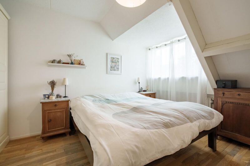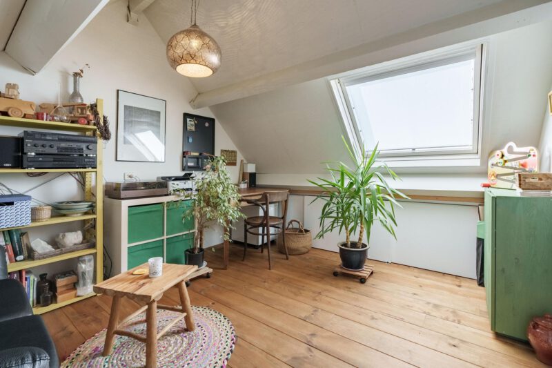 Op de zolder bevindt zich een fijne extra ruimte die ideaal is als vierde slaapkamer, werk- of hobbykamer. Dankzij het dakraam is er voldoende daglicht aanwezig. Achter de knieschotten is praktische bergruimte gecreëerd, perfect voor het opbergen van seizoensspullen of andere zaken die u niet dagelijks nodig heeft.