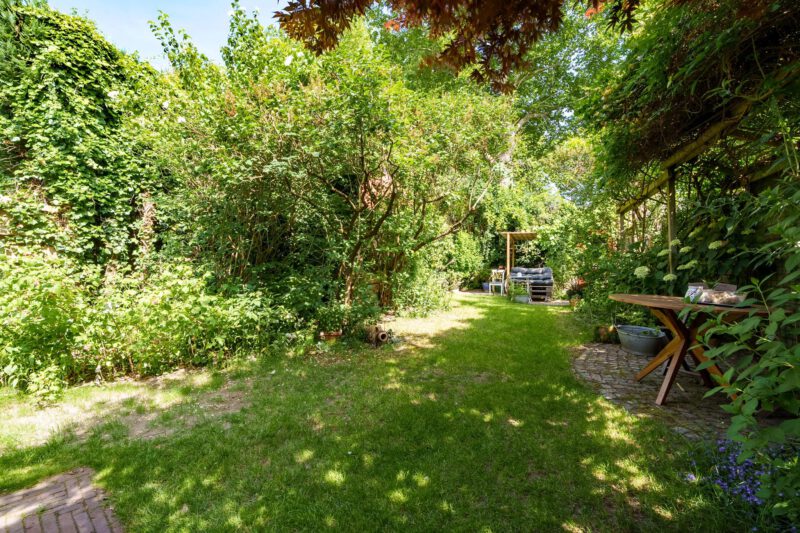 – Een heerlijke diepe achtertuin met privacy die gelegen is op het Noorden maar door de diepe ligging is er voldoende zon aanwezig;