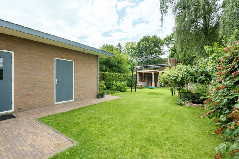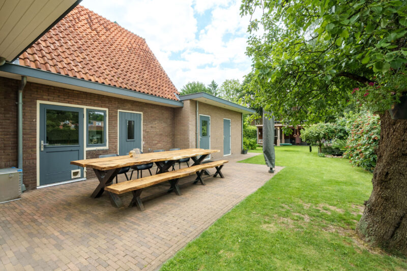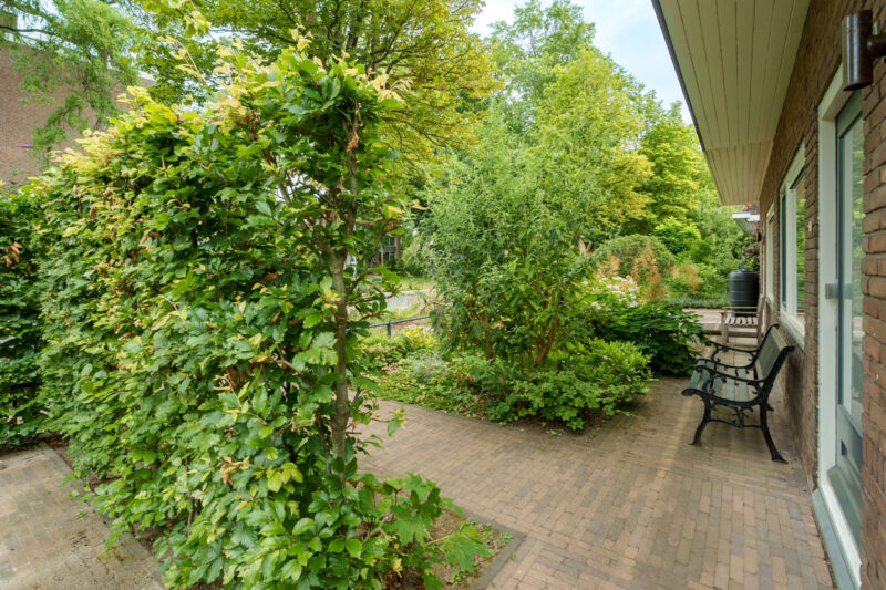 – De diepe en zonnige achtertuin ligt heerlijk op het zuiden met veranda;
