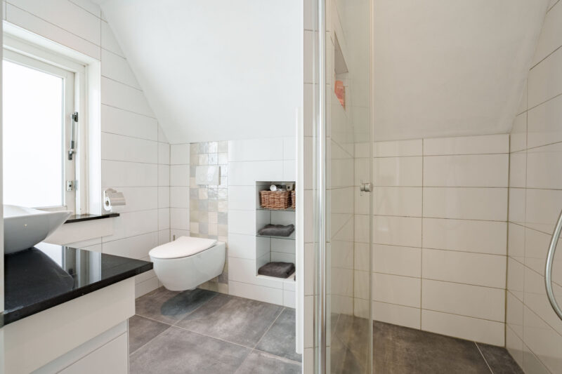 Eerste verdieping: overloop, twee ruime slaapkamers beide voorzien van een vaste kast, airco, laminaatvloer en dakkapel. Badkamer voorzien van wastafelmeubel, inloopdouche en een tweede toilet.