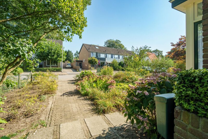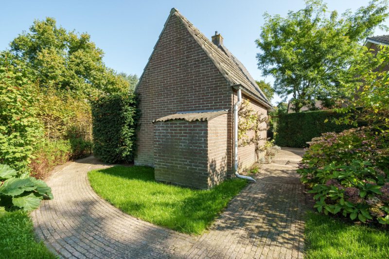 Aan een rustige straat in het bosrijke Heelsum gelegen vrijstaande, levensloopbestendige woning met tuin rondom en ruime schuur met vliering.