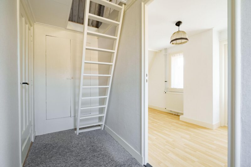 Eerste verdieping: overloop met toegang tot twee slaapkamers. Met een vlizotrap is de tweede (zolder)verdieping te bereiken.