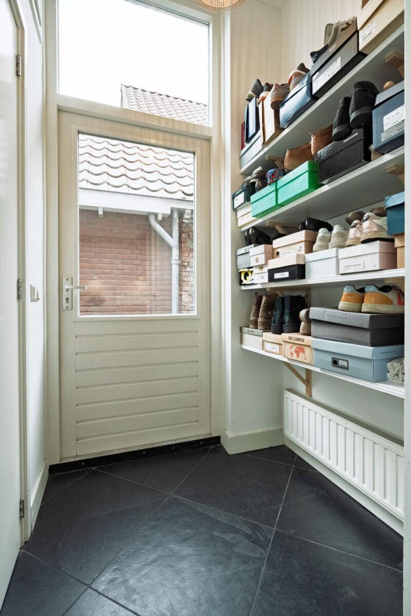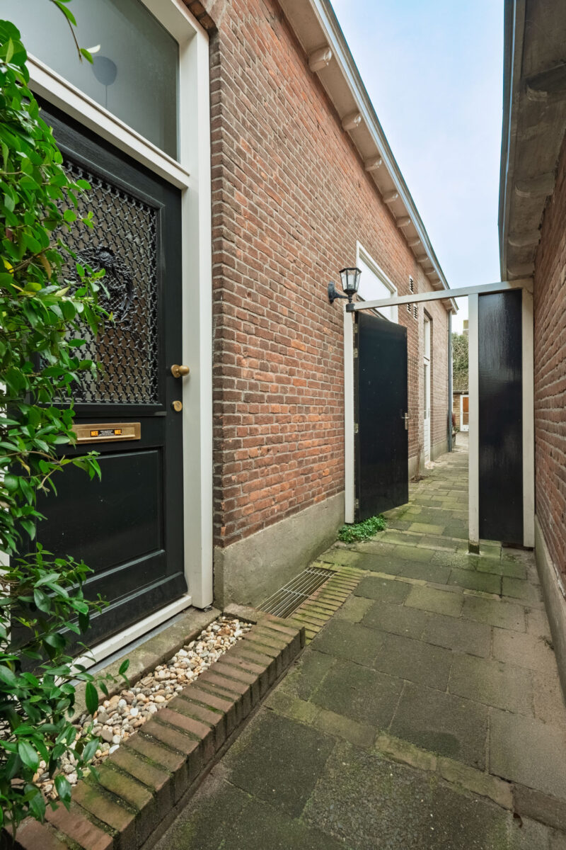 Via de zij-entree betreedt u de hal, die toegang biedt tot de kelder. Vanuit de hal komt u in de riante achterkamer c.q. woonkeuken, voorzien van een fraaie serre en een natuurstenen vloer. De serre beschikt over openslaande terrasdeuren die toegang geven tot de achtertuin.