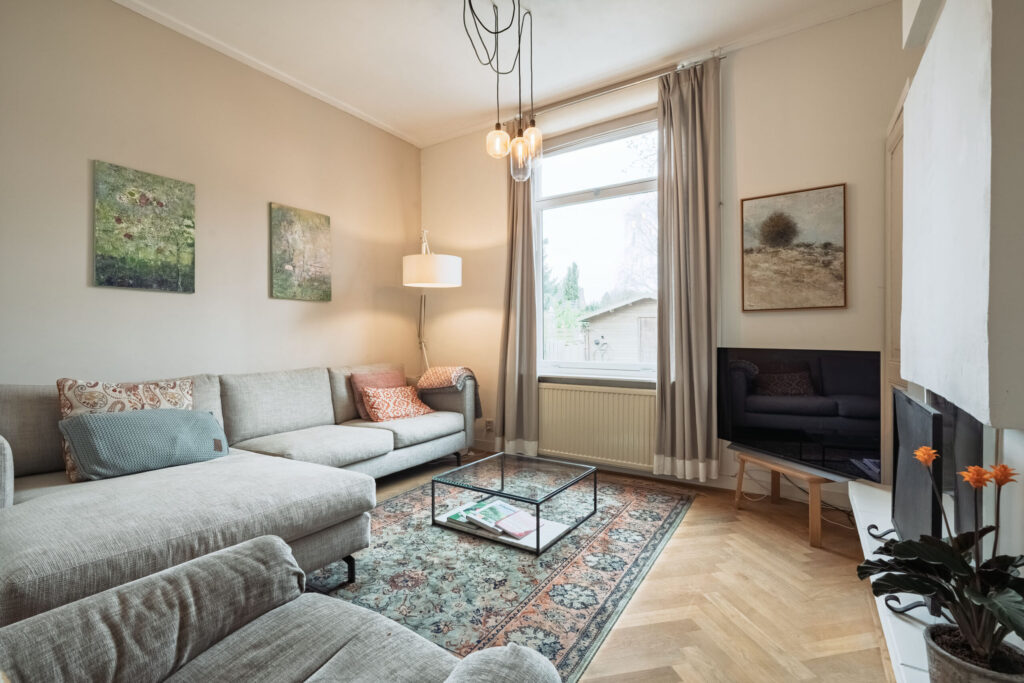 In de mooie karakteristieke en geliefde woonomgeving Veluvia gelegen geheel gerenoveerde, sfeervol jaren ’30 helft van een dubbel woonhuis met een mooie serre vol daglicht aan de achterzijde en een diepe achtertuin.