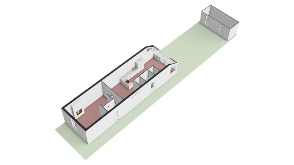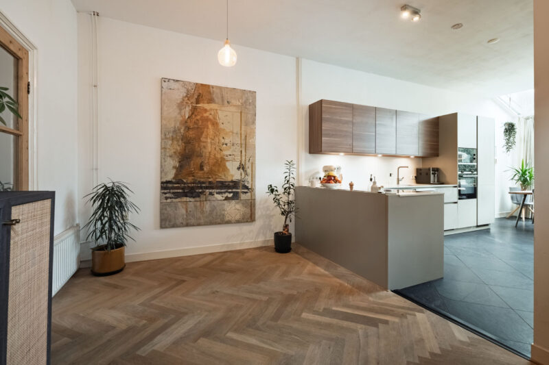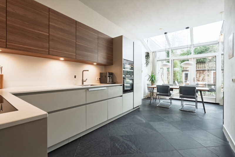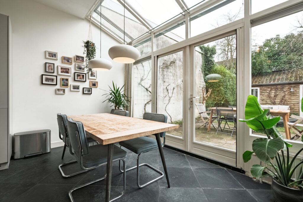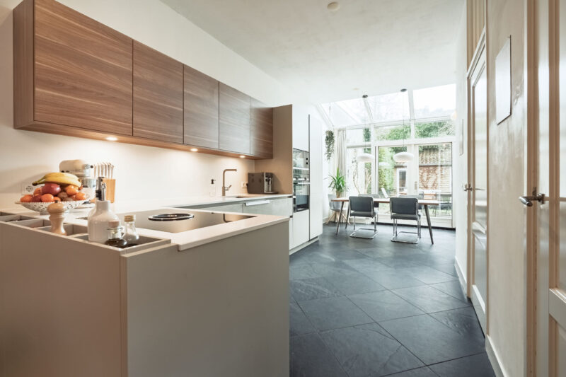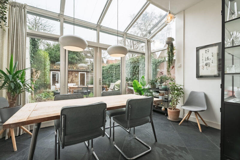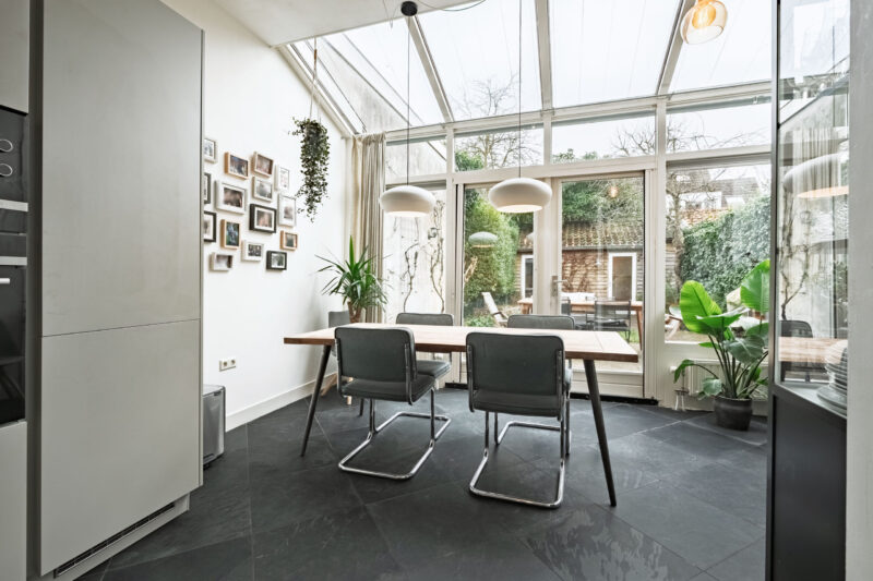 – De achterkamer is voorzien van een serre, een keuken en een natuurstenen vloer;