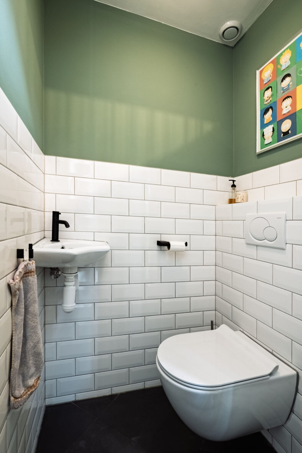 Vanuit de keuken is de tweede hal bereikbaar, voorzien van een garderobe, een toiletruimte met fonteintje en een deur naar de zijtuin.