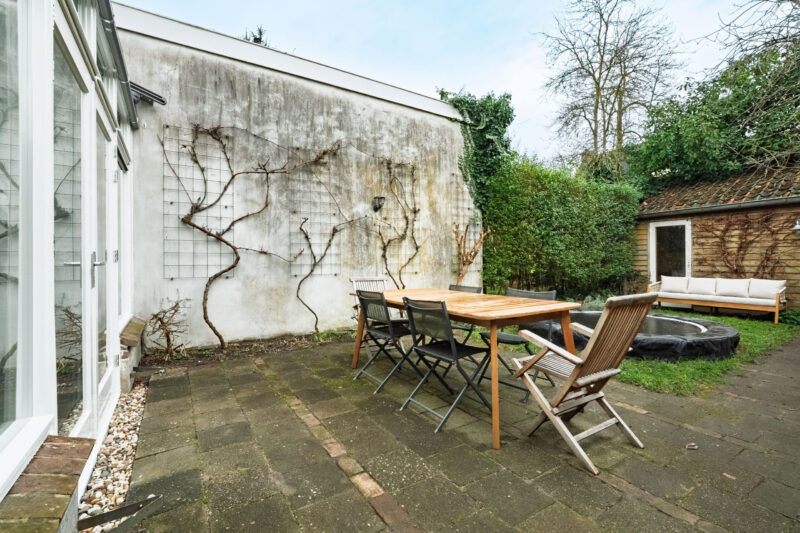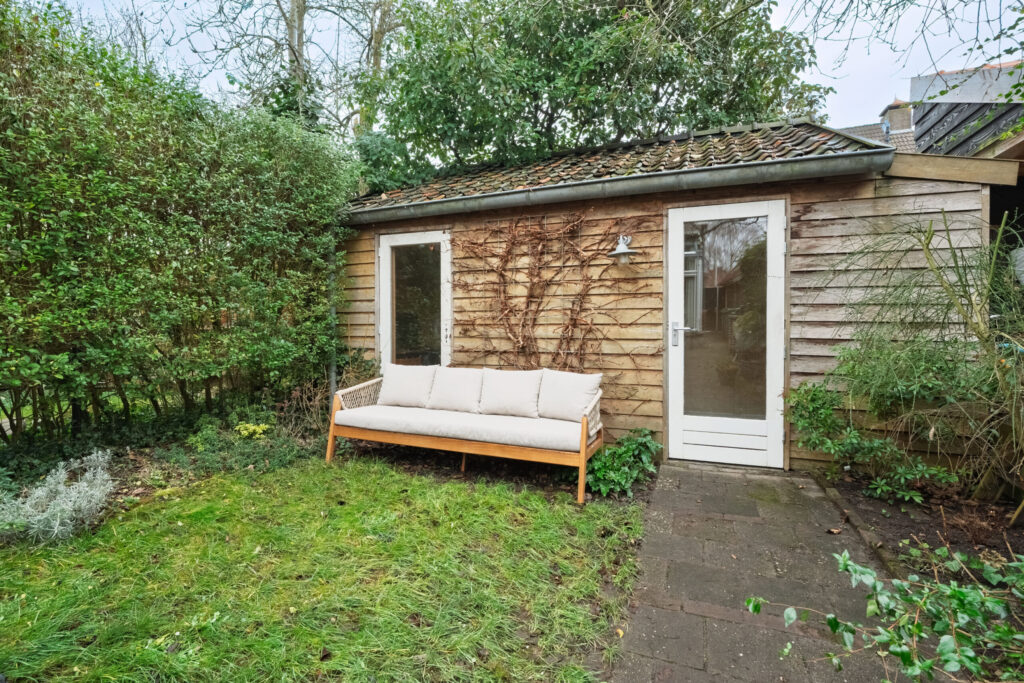 – In de achtertuin is een ruime en lichte houten berging aanwezig welke volwaardig is geïsoleerd;