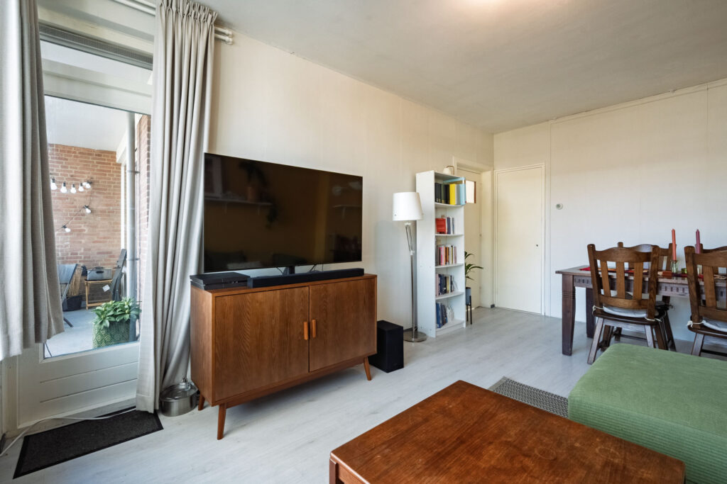De woonkamer is gelegen aan de achterzijde en is dankzij de brede raampartij heerlijk licht. De ruimte biedt voldoende mogelijkheden voor het creëren van een comfortabele zithoek en een gezellige eethoek.
