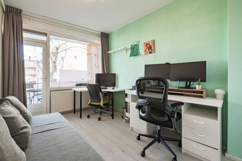De drie slaapkamers beschikken over een prettige lichtinval. één slaapkamer heeft een vaste kast. Door de indeling zijn de kamers flexibel te gebruiken, bijvoorbeeld als slaapkamer, thuiswerkplek of hobbyruimte.