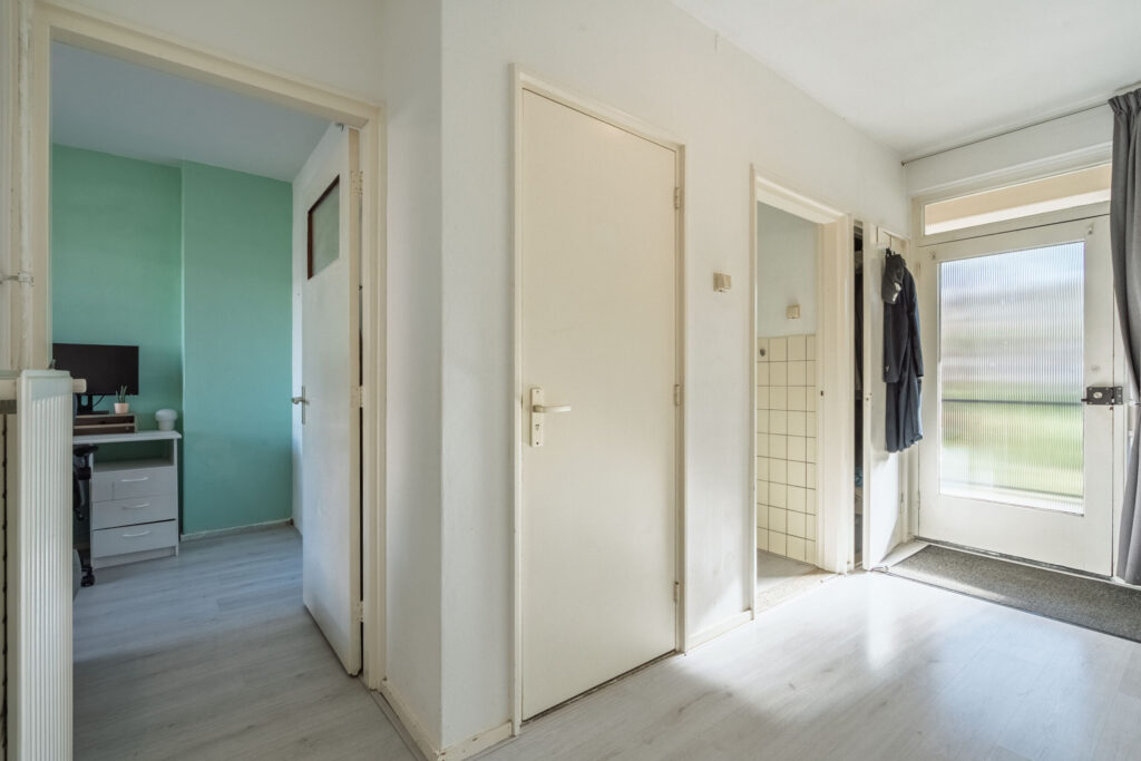Bij binnenkomst in het appartement kom je in de hal, waar zich het toilet, de meterkast en diverse vaste kasten bevinden. Vanuit hier heb je toegang tot de verschillende vertrekken.