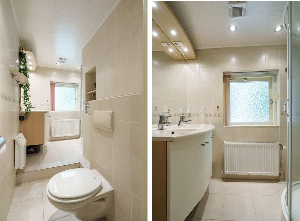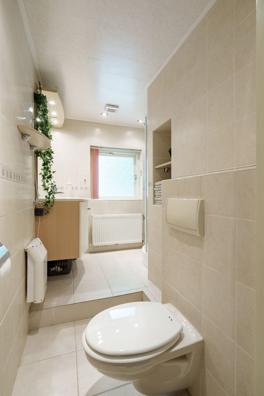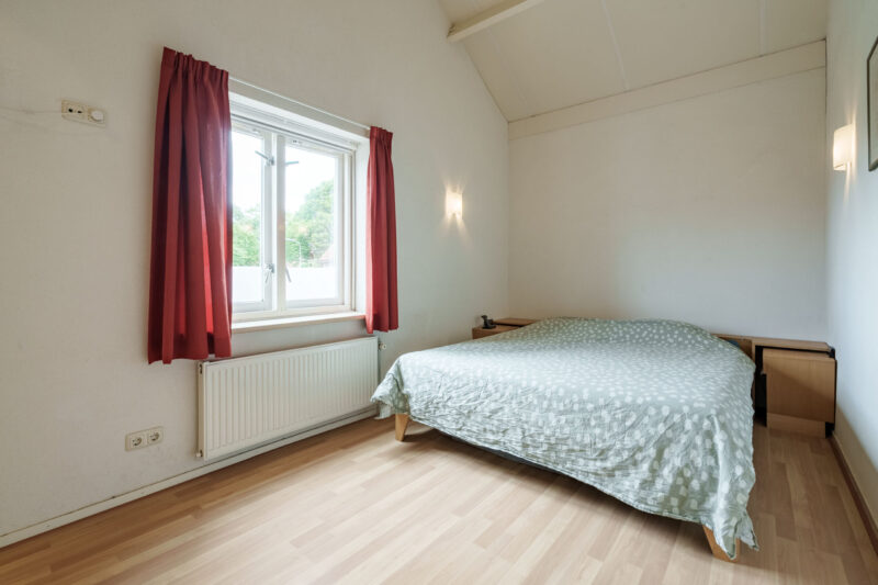 Vanuit de woonkamer is de tweepersoonsslaapkamer te bereiken met schuifwand kledingkast. Badkamer voorzien van een douchecabine, wastafelmeubel en toilet.