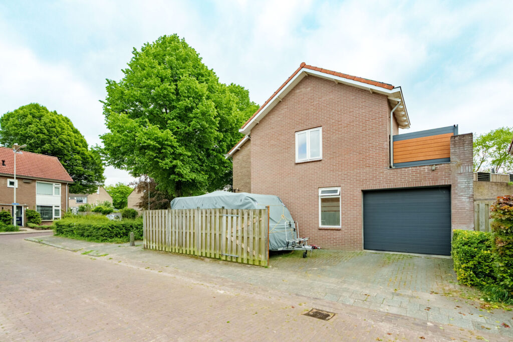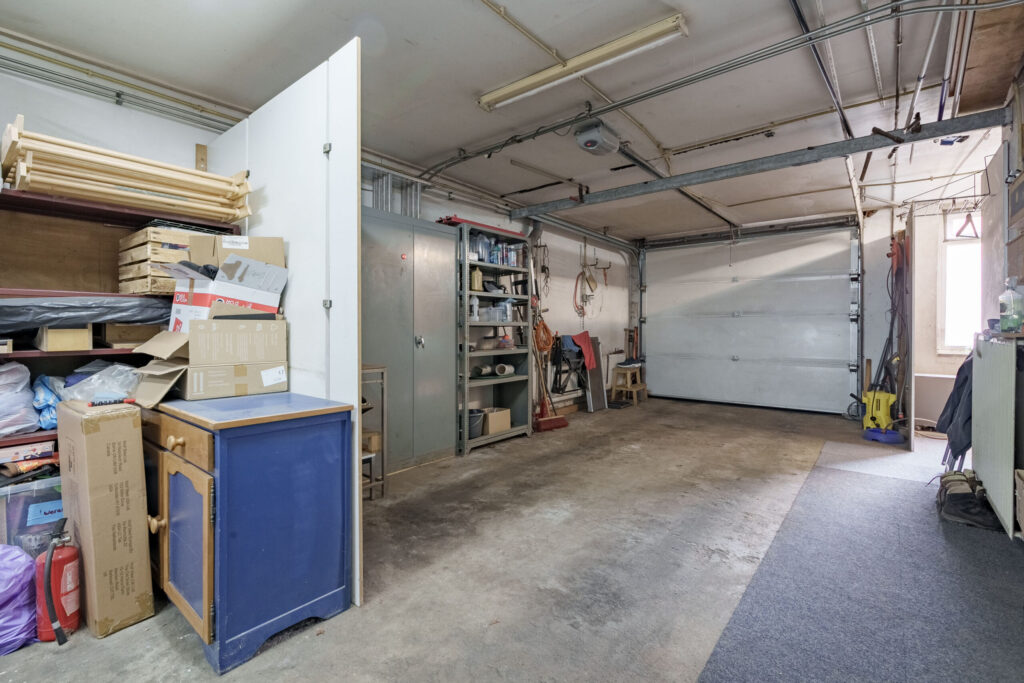 Verder is er nog een royale inpandige garage aanwezig van ca. 46 m² met een elektrische roldeur en met twee parkeerplaatsen op eigen terrein.