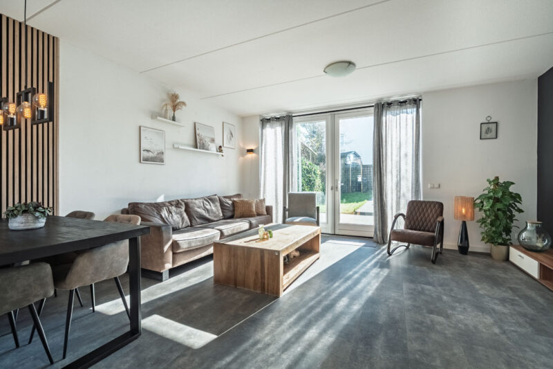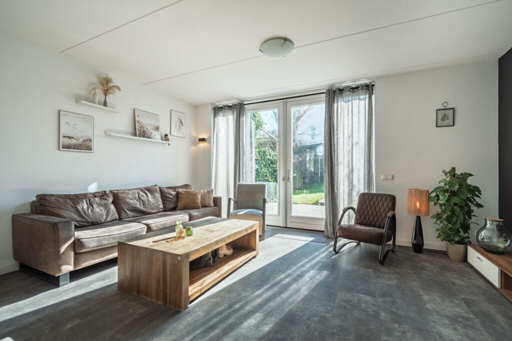 Wanneer u de woning binnenstapt, komt u via de hal waar zich de meterkast en een toiletruimte met fonteintje bevinden, in de lichte en ruime woonkamer. De openslaande deuren geven direct toegang tot de achtertuin.