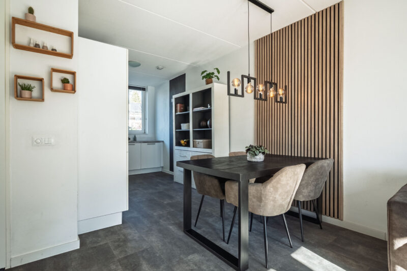 De woning biedt voldoende ruimte voor het creëren van een gezellige eethoek. De begane grond is daarnaast voorzien van vloerverwarming, wat zorgt voor extra comfort.