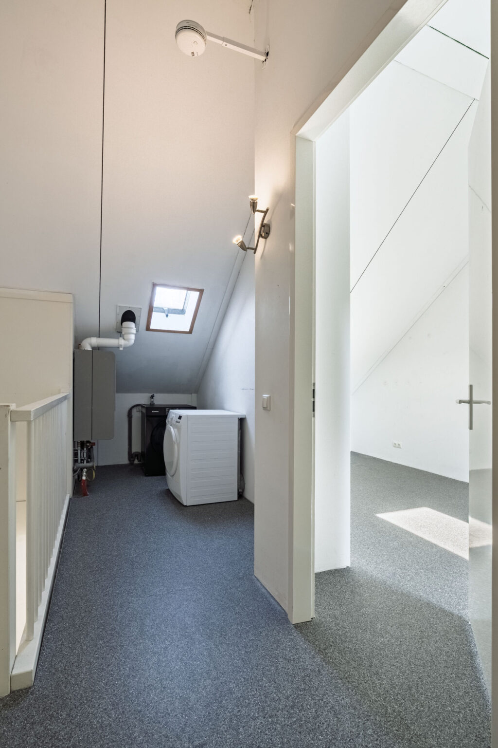 Op de tweede verdieping bevindt zich een vierde slaapkamer. Dankzij het dakraam valt er prettig daglicht naar binnen. Op de overloop bevinden zich tevens de aansluitingen voor de wasmachine.