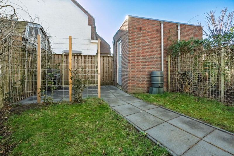 De woning beschikt over een ruime en diepe achtertuin, gelegen op het zuiden. Hierdoor kunt u hier gedurende de dag optimaal van de zon genieten. De tuin biedt voldoende ruimte voor het creëren van een terras, een loungeplek of een speelruimte. De stenen berging biedt ruimte voor het opbergen van spullen.