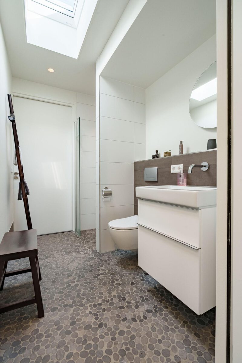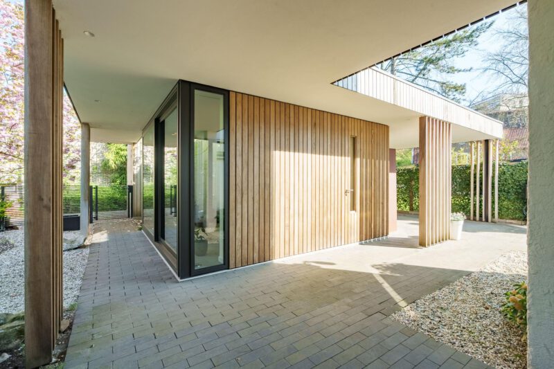 De woning met energielabel A+++ is volledig energiezuinig en beschikt over een lucht-water warmtepomp en 34 zonnepanelen.