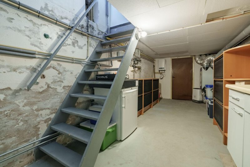 Begane grond: entree, ruime hal met garderobe, toilet met fontein, trap naar de kelder op stahoogte met aansluitend stookruimte, trapopgang naar de verdieping, half open keuken met eetgedeelte, openslaande deuren naar het overdekte terras en voorzien van vaatwasser, inductiekookplaat, rvs afzuigkap, koelkast, Quooker en combi stoomoven. Tuingerichte woonkamer met veel lichtinval, inbouwhaard en brede dubbele schuifpui met toegang tot het terras. Aansluitend toegang tot de werkruimte.