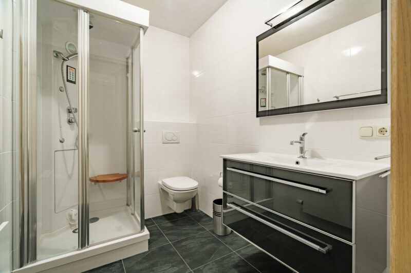 – De hal, woonkamer, keuken en één slaapkamer zijn voorzien van een natuurstenen vloer;